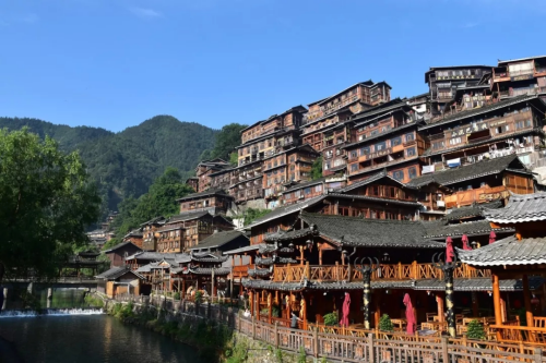 向“黔”進(jìn),必進(jìn)鎮(zhèn)遠(yuǎn)。舞陽河呈S型穿城而過,將鎮(zhèn)遠(yuǎn)古城一分為二,府衛(wèi)城各有故事,各有精彩。自古是軍事及商業(yè)要塞的鎮(zhèn)遠(yuǎn),與很多古鎮(zhèn)不同,臨街的樓房雖是新式樓房,但仍然保留著古典“徽派”的建筑風(fēng)格。順著老街的小巷觀賞古鎮(zhèn)的古老建筑,一定要見識(shí)下傳說中的“歪門斜道”。這里的民居大門的朝向都是歪的,不與街道巷道平行,而且巷道也是七扭八拐的。這特別的建筑風(fēng)格據(jù)說是來自風(fēng)水師的告誡,目的是為了藏風(fēng)聚氣。也似乎讓鎮(zhèn)遠(yuǎn)古鎮(zhèn)更有歷史韻味,讓人嘆為觀止。