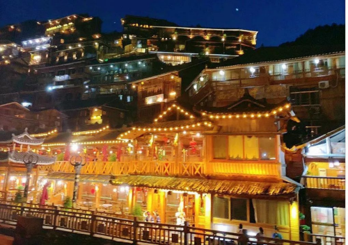 霸王花人入鄉(xiāng)隨俗,接受苗家最隆重的待客禮儀,在長桌宴上品嘗了名不虛傳的美食,在迎賓歌唱聲中,飲盡苗家妹子遞上的米酒,饒有興致地紛紛體驗(yàn)了“高山流水”的苗家酒文化。站在觀景臺(tái)上能夠俯看西江千戶苗寨全景,白水河如玉帶纏腰,將西江千戶苗寨一分為二,寨子建立在70度的高坡上,蔚為壯觀。夜晚幾千盞燈,燈火通明,讓人感嘆。全部西江千戶苗寨猶如一幅漂亮的畫卷,讓人流連忘返。